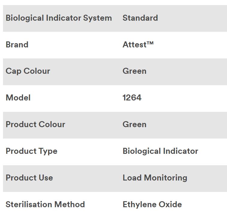ATTEST BIOLOGICAL INDICATOR (1264) PACK/20