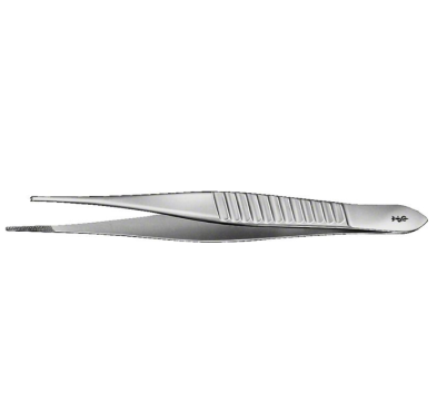 The Gillies Tissue Forceps are dissecting forceps used in small surgical sites to grasp tissue. They are straight, delicate & toothed (1x2) measuring 155MM (6 1/8inches). They are non-sterile surgical grade stainless steel & reusable, and include a non-locking thumb handle.