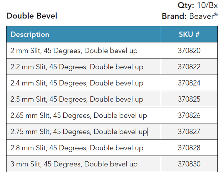 SKU # 370827 2.75 mm Slit, 45 Degrees, Double bevel up