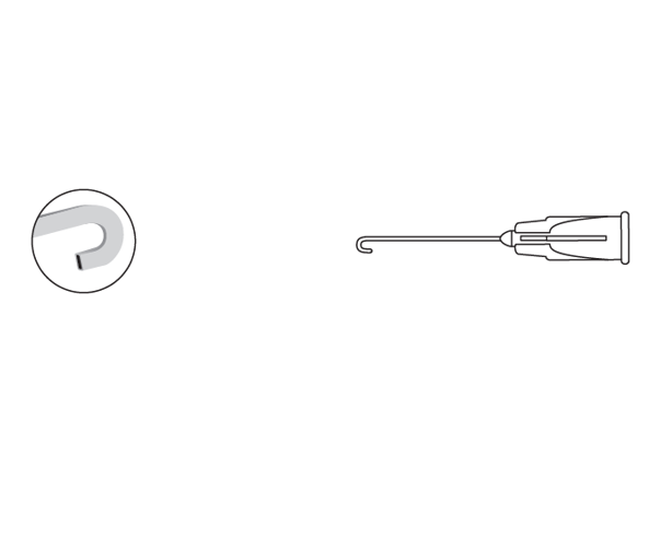 The Micro J Shape Hydrodissector (Pearce) has a hook that is 2.25 mm long x 1.75 mm wide. The micro size flattened tip allows for easy insertion through wound and under capsule.