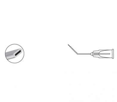 The Cortical Cleaving Hydrodissector (Flat End) in bent at 45 degrees, 11mm from tip. For cleaving cortex from capsular bag.