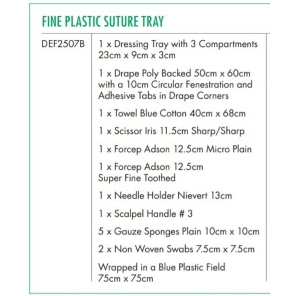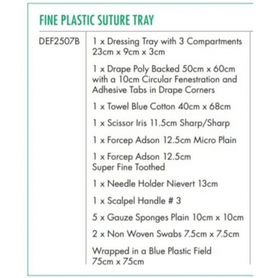SUTURE TRAY FINE PLASTIC STERILE (DEF2507B) BOX/10