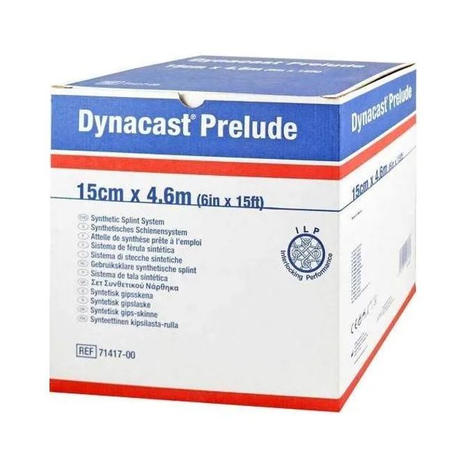 Dynacast® Prelude is an easy-to-use, pre-assembled synthetic splinting system. Made from polyurethane coated fibreglass covered by polypropylene padding, Dynacast Prelude provides stabilisation in 2-4 minutes and enables weight bearing in just 20 minutes. Supplied in a 4.6 metre roll.