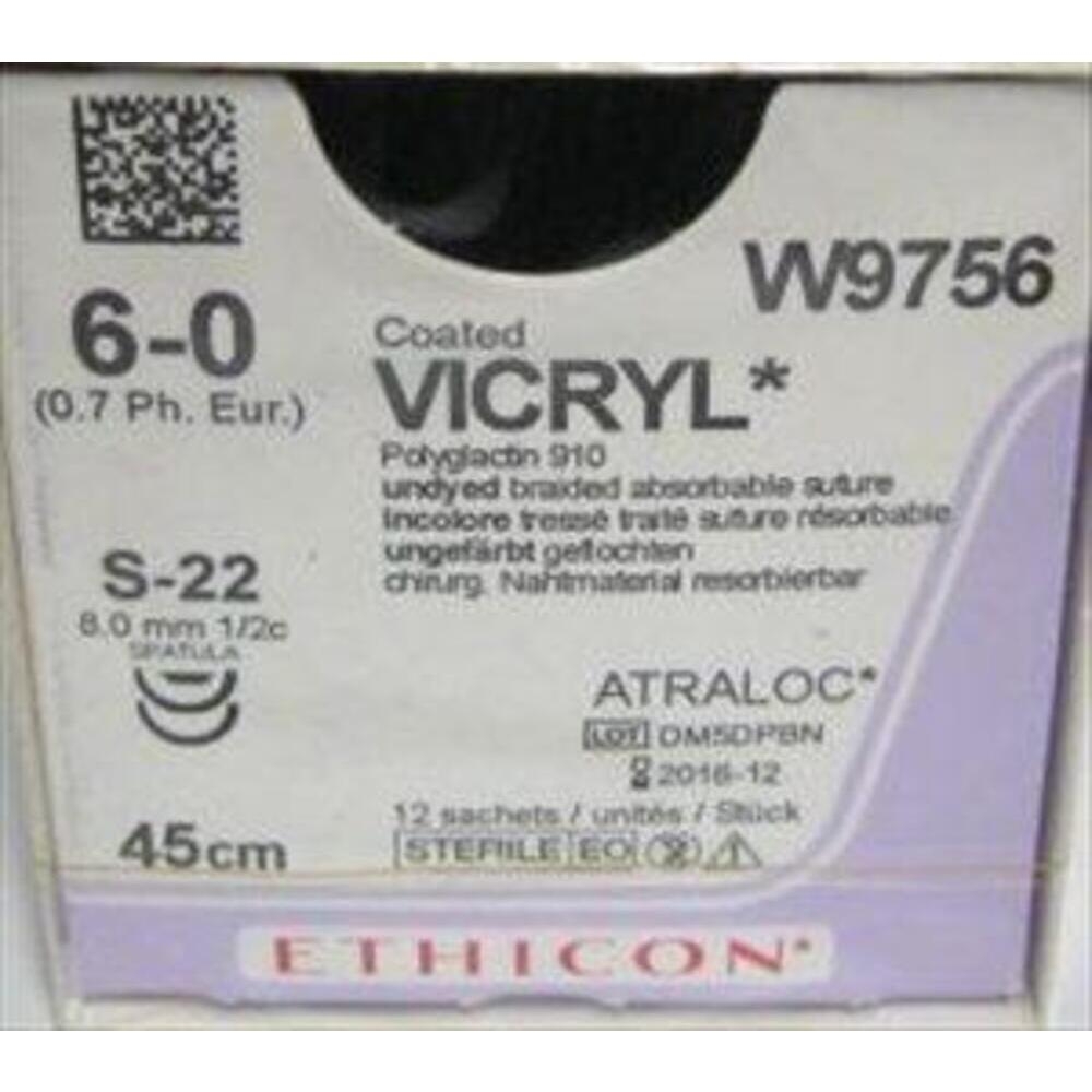 SUTURE VICRYL CTD 6/0 8MM 2XS-22 (W9756) BOX/12