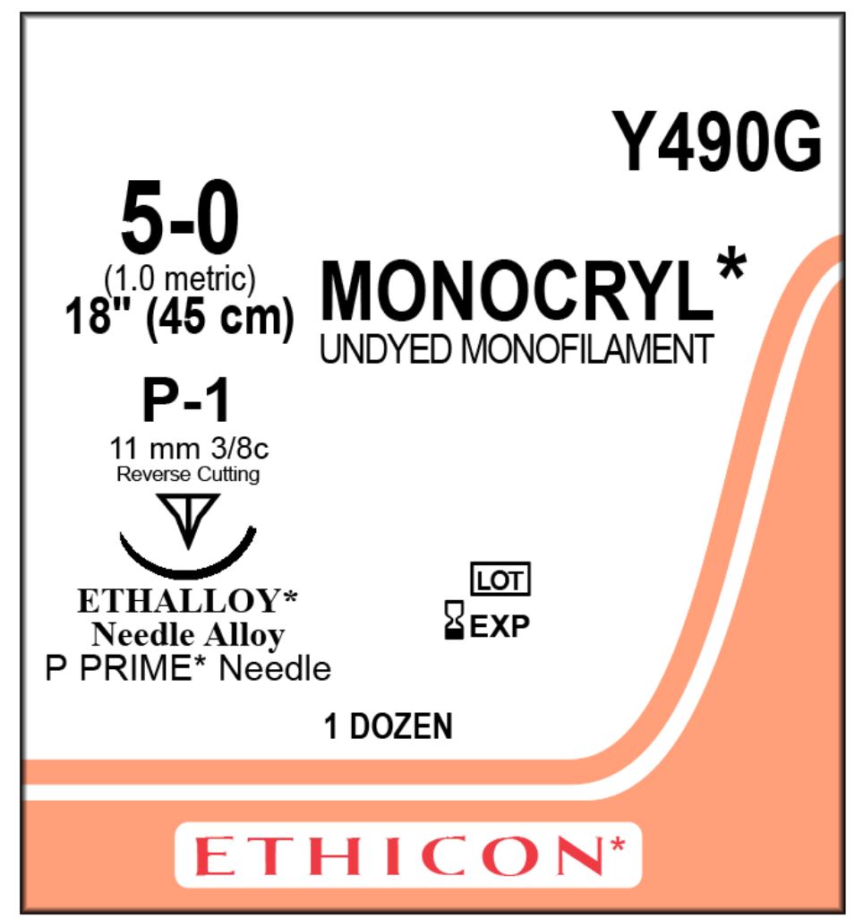 SUTURE MONOCRYL PLUS 5/0 (MCP490G) BOX/12