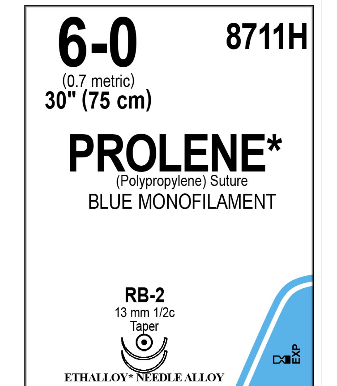 SUTURE PROLENE BLU 6/0 75CM (8711H) BOX/36