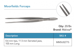 The Moorfield Forceps are a multipurpose surgical tool that ophthalmic surgeons commonly use to grasp, mobilize and manipulate the conjunctiva and other soft tissues of the eye.