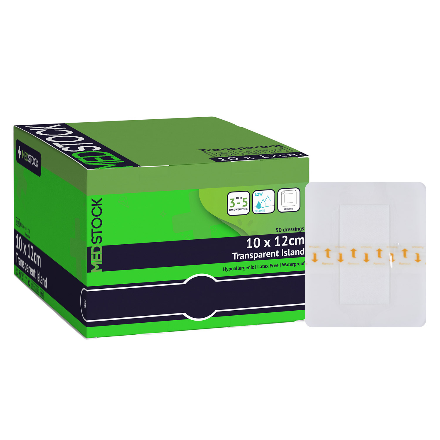 MEDSTOCK TRANSPARENT ISLAND DRESSING 10X12CM BOX/50