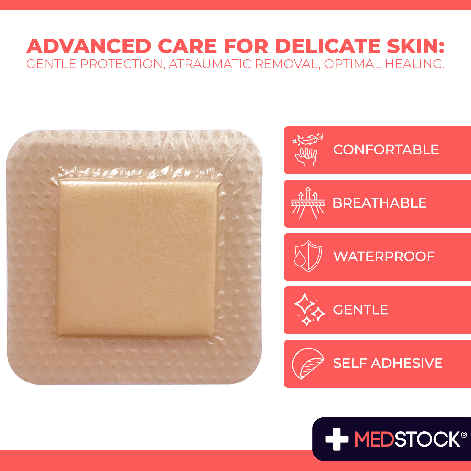 Medstock Silicone Foam Lite with Border is a thin profiled, 4-layer silicone adhesive foam dressing that is gentle and conformable to fragile skin.
