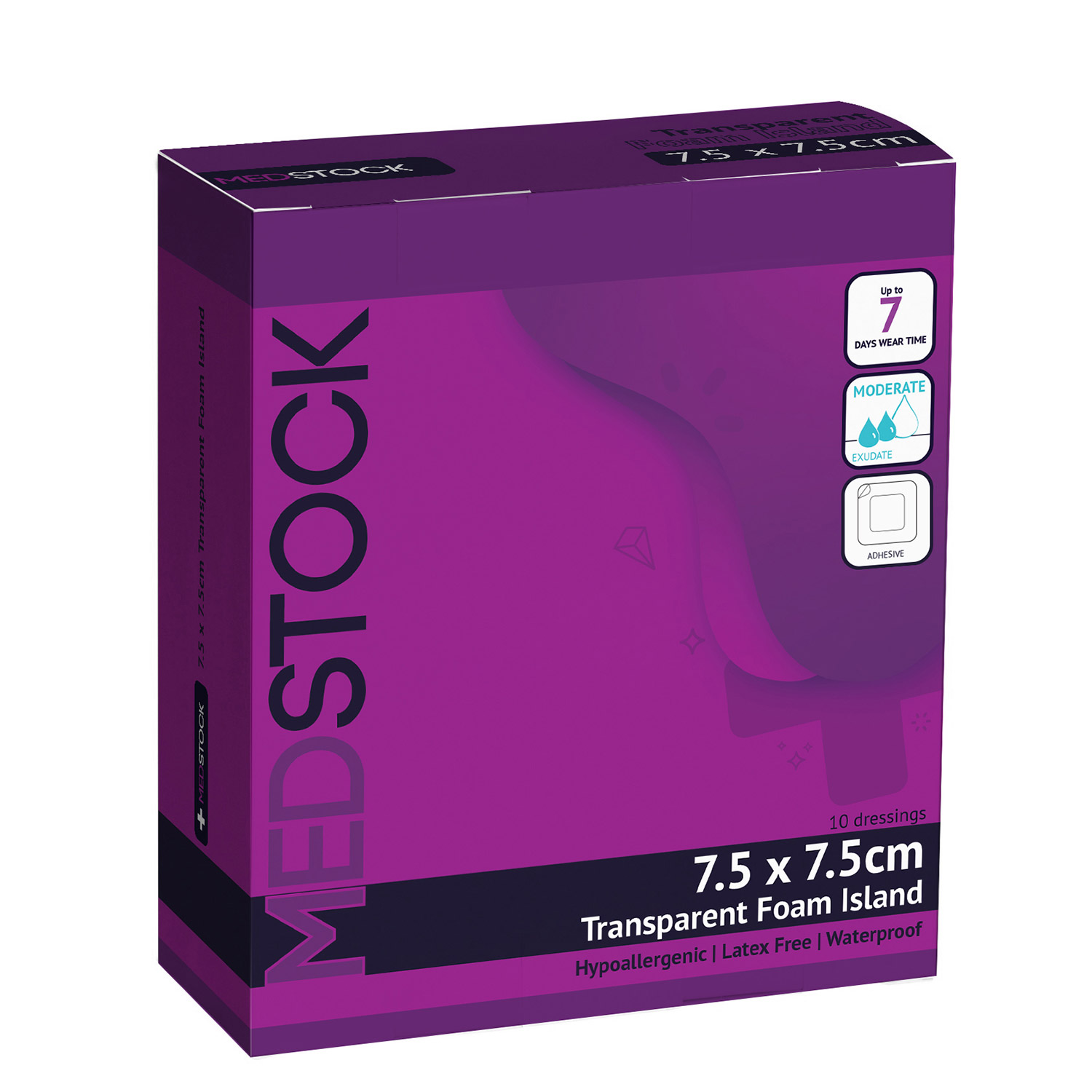 MEDSTOCK TRANS FOAM ISLAND DRESSING 7.5X7.5CM MS7575TFI B10