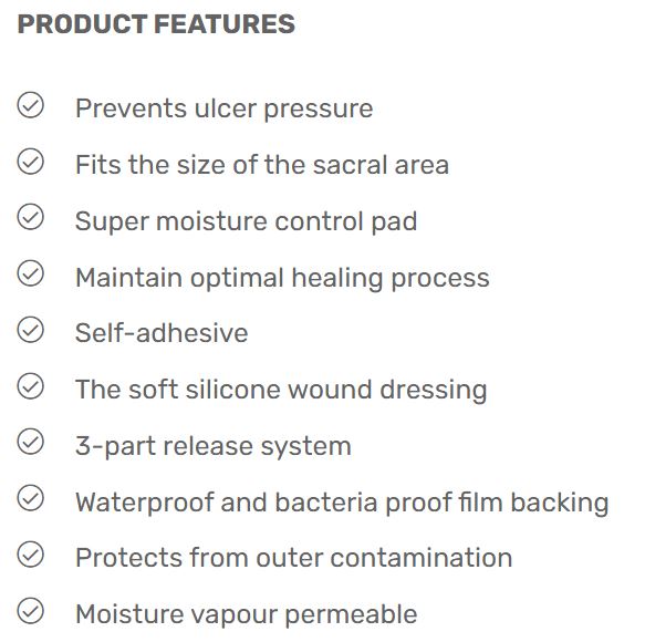 • Five-layer foam dressing for pressure injury prevention and management of sacral wounds. Proprietary Deep Defense® technology * Protects against the extrinsic forces - pressure, shear and friction; and manages micro-climate, the key factors responsible for pressure injuries.12 * Maintains structural Integrity and durability through wear time14. Safetac® technology * Helps the dressings stay in place for several days, reducing the frequency of dressing changes. * Reduces pain and risk of skin damage for patients at dressing removal.16 Smart Exudate Management * Provides a balance of exudate absorption, retention and moisture vapour loss15 Anatomically shaped * Optimised for enhanced coverage of high risk areas.