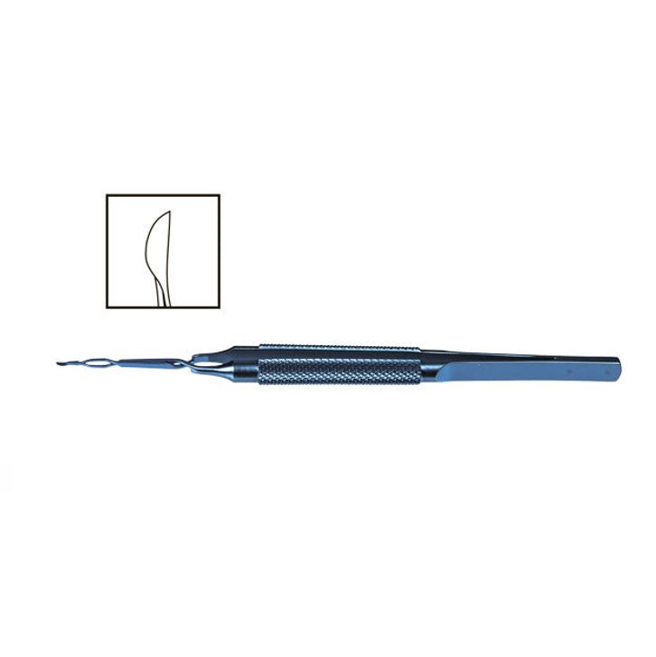 Prechopper Forceps are designed to crack the nucleus into four or more fragments in the capsular bag. The shanks of the forceps open to a maximum of 1.8 mm at the incision area while the tips open to 2.8 mm. The tip of the forceps has a sharp point that initally penetrates the nucleus. When squeezing the round body handle the tips open to crack and split the nucleus. Ultrasound time can be reduced by 50 %.