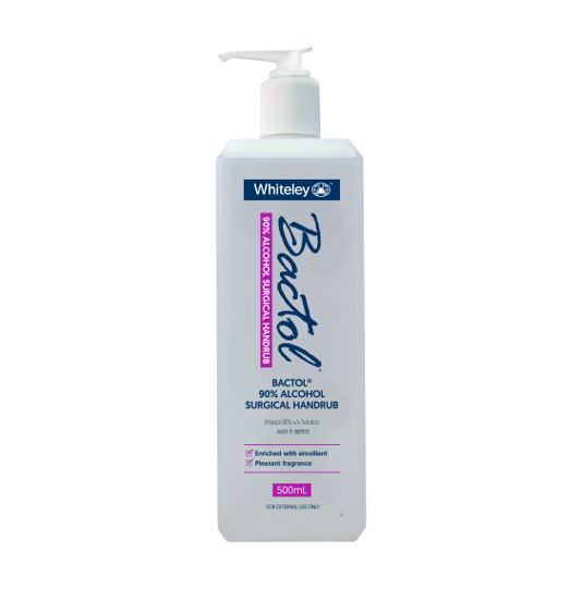 Bactol 90% Alcohol Surgical handrub is a fast-acting antiseptic hand rub for surgical-grade hand disinfection from Whiteley.