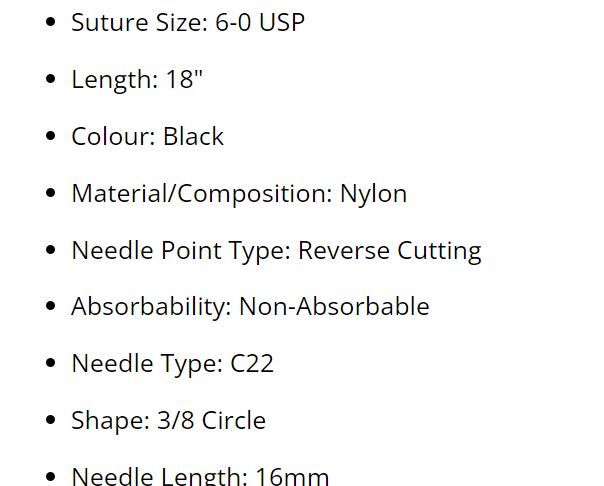 SUTURE NYLON NYLUS 6/0 16MM (L915B) BOX/12