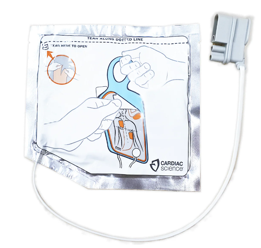 Adult Intellisense® defibrillation pads are stored preconnected to the AED; a technology originally developed by Cardiac Science to expedite the rescue process. The pads can be placed in either position on the chest to reduce confusion and save time during a rescue.
