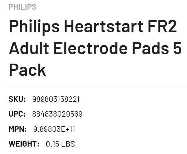 DEFIB PADS 1-PACK HS FR/FR2 (989803158211) EA