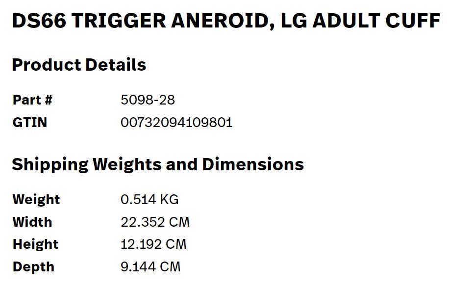 SPHYGMO HAND ANEROID DS66 W/A (5098-27) ADULT CUFF