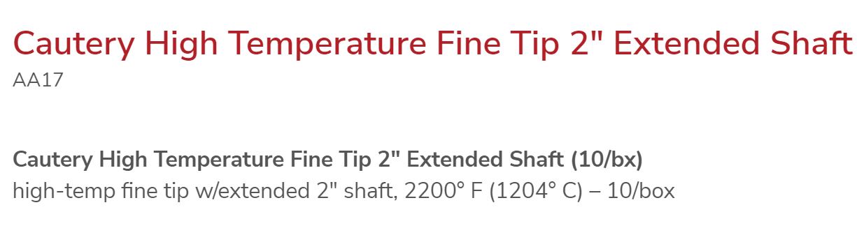 CAUTERY HIGH TEMP W/EXTENDED 2" SHAFT (AA17) BX/10