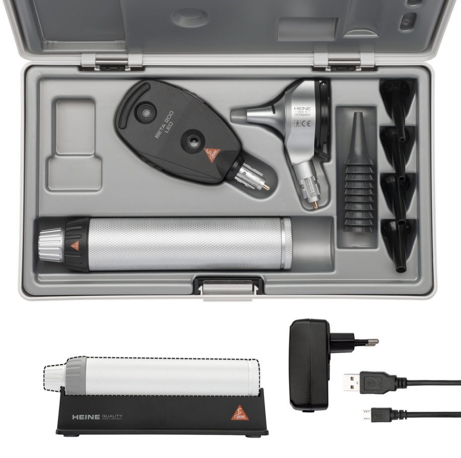 Heine Beta 400 XHL F.O Otoscope: 4.2x magnification with LEDHQ illumination.