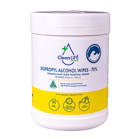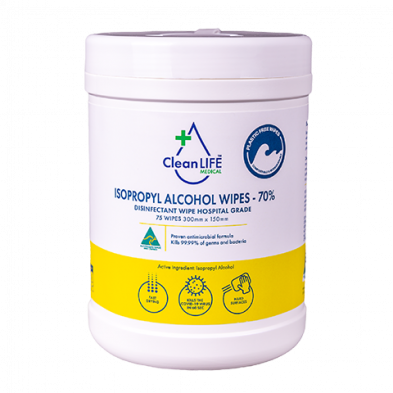 CleanLIFE Medical Isopropyl Alcohol Wipes 70% are ready to use hospital grade wipes for disinfecting a wide variety of surfaces and common touch point areas. They provide broad antimicrobial effectiveness against a range of bacteria including: Staphylococcus aureus, Escherichia coli, Pseudomonas aeruginosa, Enterococcus hirae. Also proven efficacy against the COVID-19 virus.