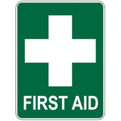 STICKER FIRST AID WHITE CROSS ON GREEN 130X90MM