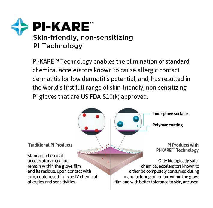 Polyisoprene, skin-friendly surgical underglove with a high level of tactile sensitivity.