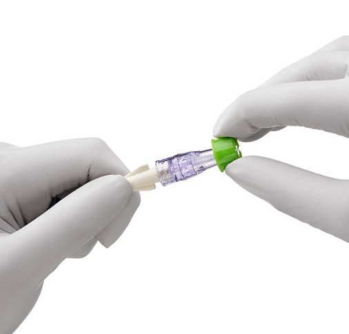 - Twists on easily and stays securely in place on commonly used needleless connectors.