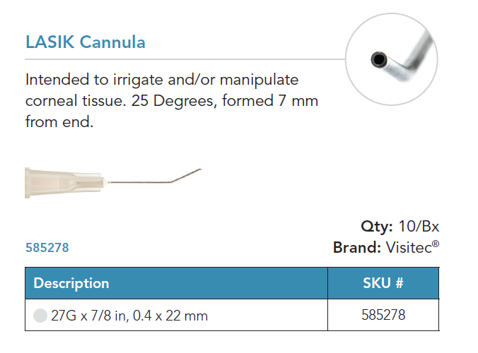 Intended to irrigate and/or manipulate corneal tissue. 25 Degrees, formed 7 mm from end.