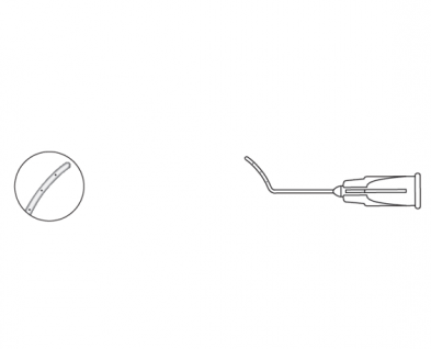 The LASIK irrigating Cannulas (Lindstrom) features three 0.25mm ports located on 7mm extension, with an 11mm radius that is bent at 45 degrees.
