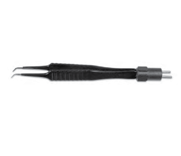 Jewelers Forceps – fine point, 4mm curved tips, angled 135 degrees, handle length 3.5inches (89 mm).