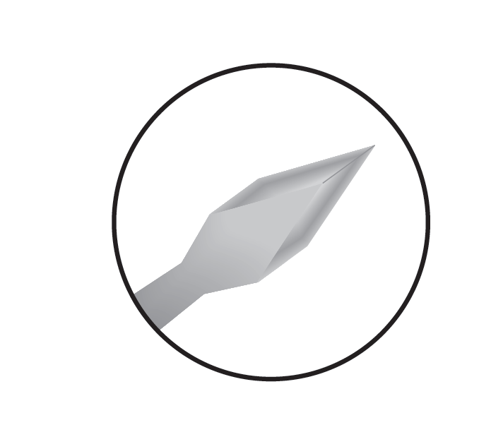 The Visitec® EdgeAhead® Knives have a sharp tip and straight shoulders, which are designed to create or enlarge initial incision for insertion of phacoemulsification tips. The matte finish reduces glare from microscope light, made from flat stock.