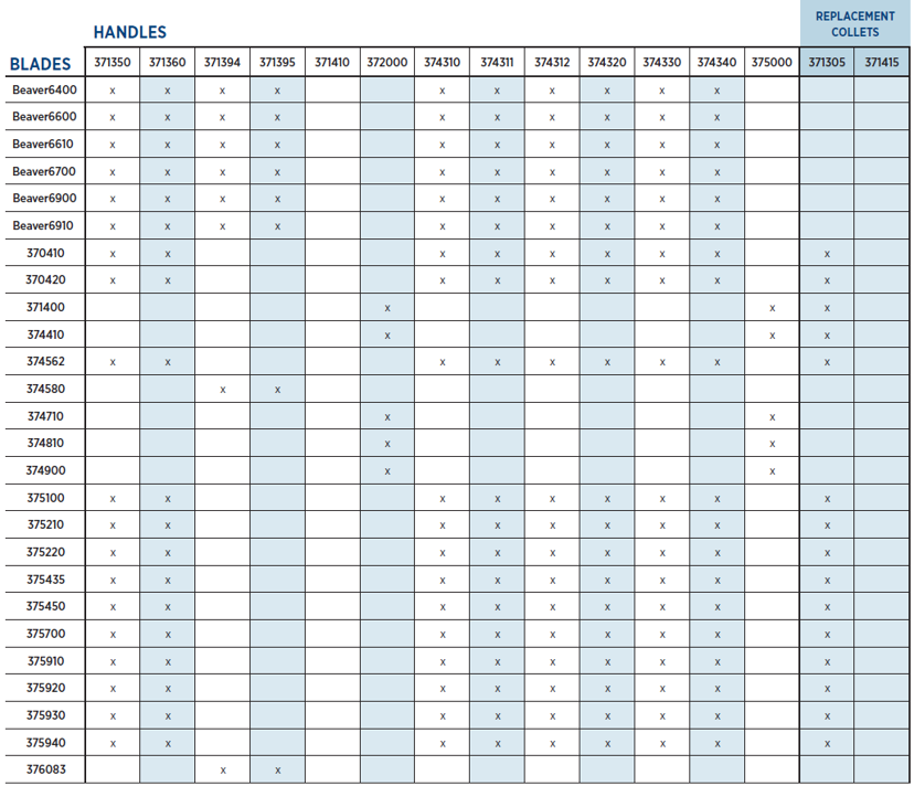 Use the table in the images to determine which handle will accommodate your Beaver blade.