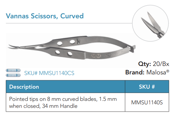 You can make quick, accurate cuts with minimal tissue damage, because these fine scissor blades are sharp. Vannas scissors work well under a dissection microscope.