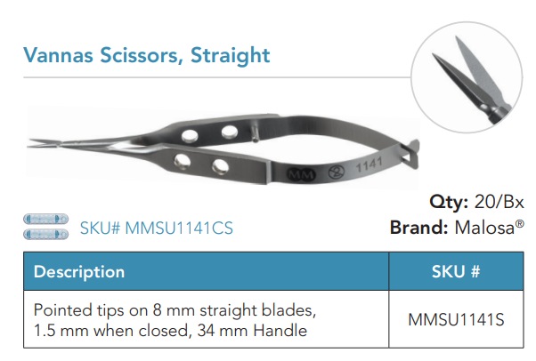 You can make quick, accurate cuts with minimal tissue damage, because these fine scissor blades are sharp. Vannas scissors work well under a dissection microscope.