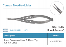 Corneal needle holders are used to secure needles in position while sutures are applied. They provide superior control during corneal procedures as they are designed to facilitate a gentle and precise experience during suturing.