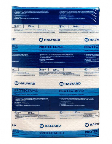 • HALYARD* Protectapad Constructed from four highly absorbent layers of tissue and a layer of strong polyethylene backing, laminated together to help prevent strikethrough.