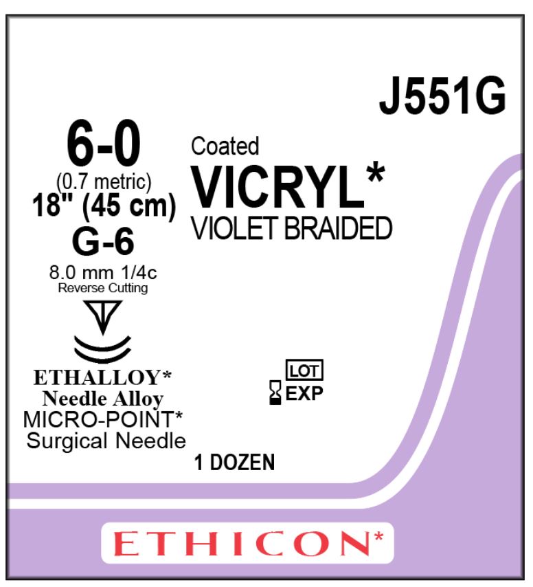 SUTURE VICRYL CTD 6/0 (J551G) BOX/12