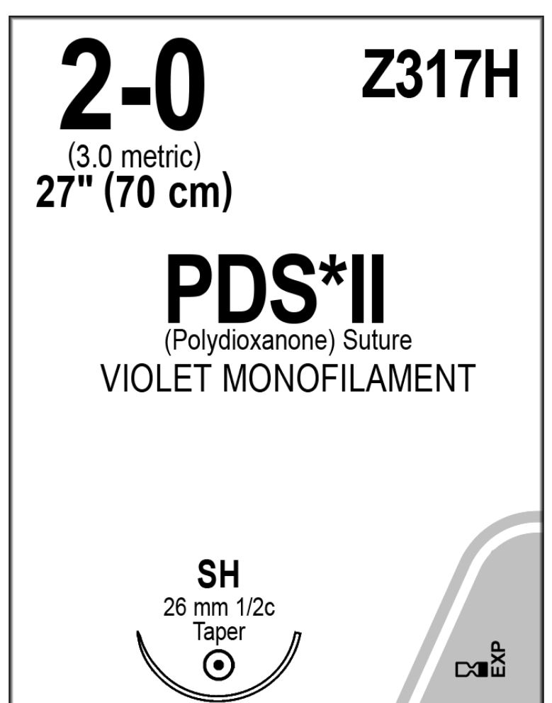 SUTURE ETHICON PDS PLUS VIOLET 2/0 26MM (PDP317H) BX36