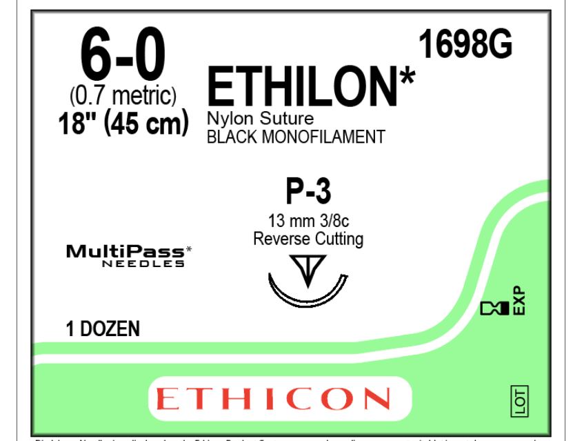 SUTURE ETHILON NYLON 6/0 (1698G) BOX/12