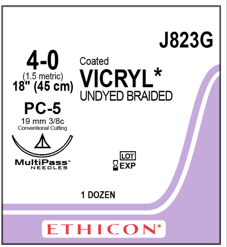 SUTURE VICRYL PLUS 4/0 19MM 45CM (VCP823G) BOX/12