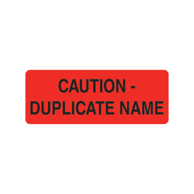 LABEL CAUTION- DUPLICATE NAME (M0017) 12X32MM 500 NS EACH