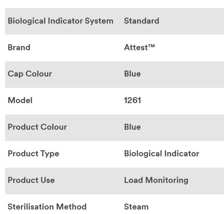 ATTEST BIOLOGICAL INDICATOR (1261) BOX/100
